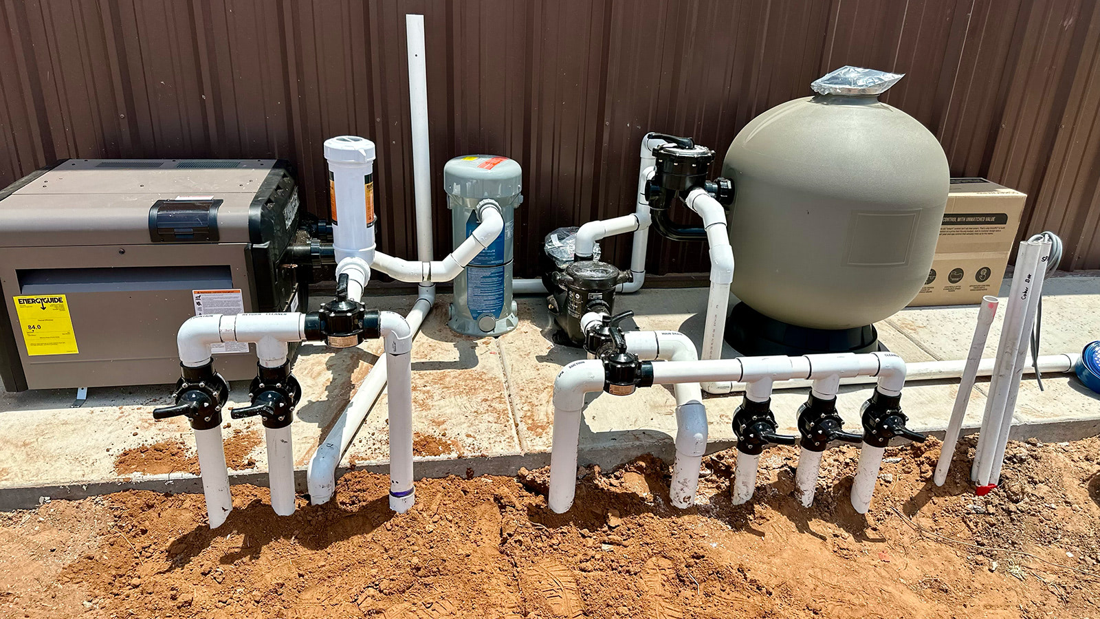 The mechanical components, including the filter system, time clock, automatic cleaner and heater (if ordered) are installed prior to plaster. If it is our electrician, we will notify him to insure all mechanical equipment is wired prior to plaster. If it is your electrician, you must inform the scheduling department both when his completion is scheduled and then when work is completed. Work relative to pool heating should also be completed now. Please note that natural gas and propane heaters require specific pipe sizes and gas pressure.