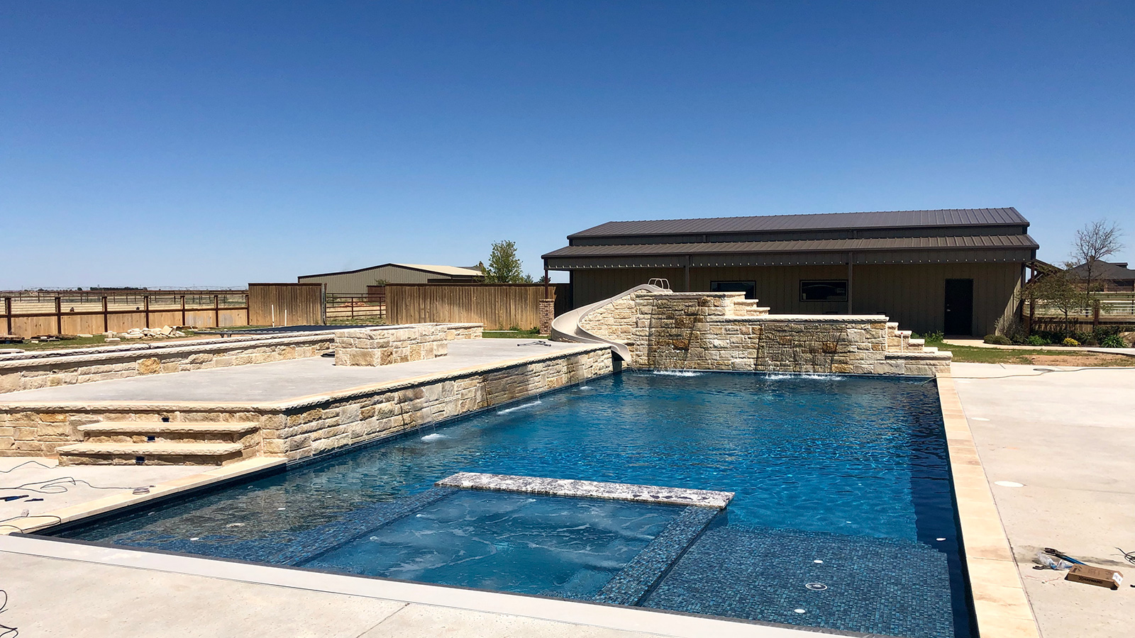 If your pool is to be edged with coping, field stone or other, our stone mason now installs this finish. Otherwise, the cantilever edge of the deck provides the pool’s top finish.