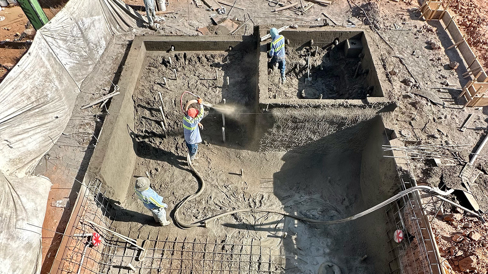 When the plans have been approved by you or your authorized representative and all necessary permits have been obtained, the construction process may begin. The pool is laid out using stakes and redwood forms. The form represents the outer edge of the pool shell. We ask that you or your representative be present at this phase for the purpose of coordination between our design and construction departments. It is extremely important that both the pool and mechanical equipment be located at this time. If your home is under construction, we will need to have access to both water and electricity at this time. The forms must not be disturbed, as they represent the exact elevation, location, size, shape and position of the finished pool.